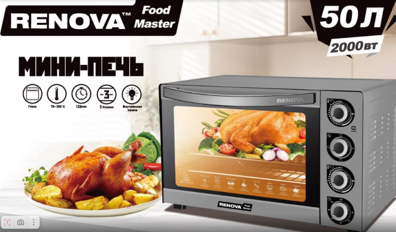 Печь RENOVA MO-50GLTS1 серебро 50л 2000 Вт 3 режима