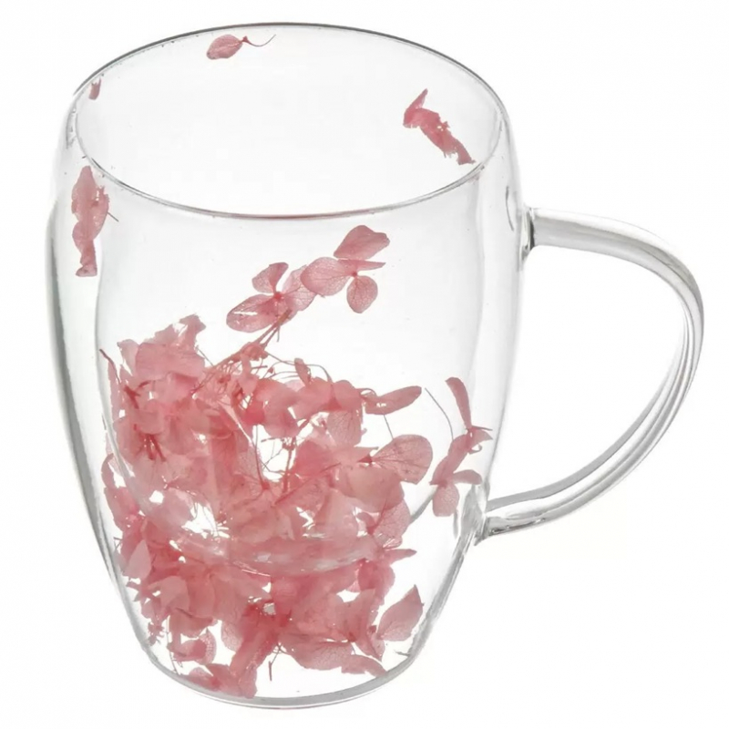 СП Кружка стекло, 350 мл, Сухоцветы розовые, двойные стенки, Y4-9727