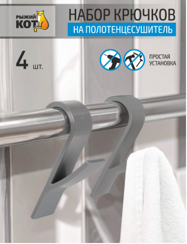СКР Набор крючков на полотенцесушитель (4 шт), 9,6*2,5*3 см, серый