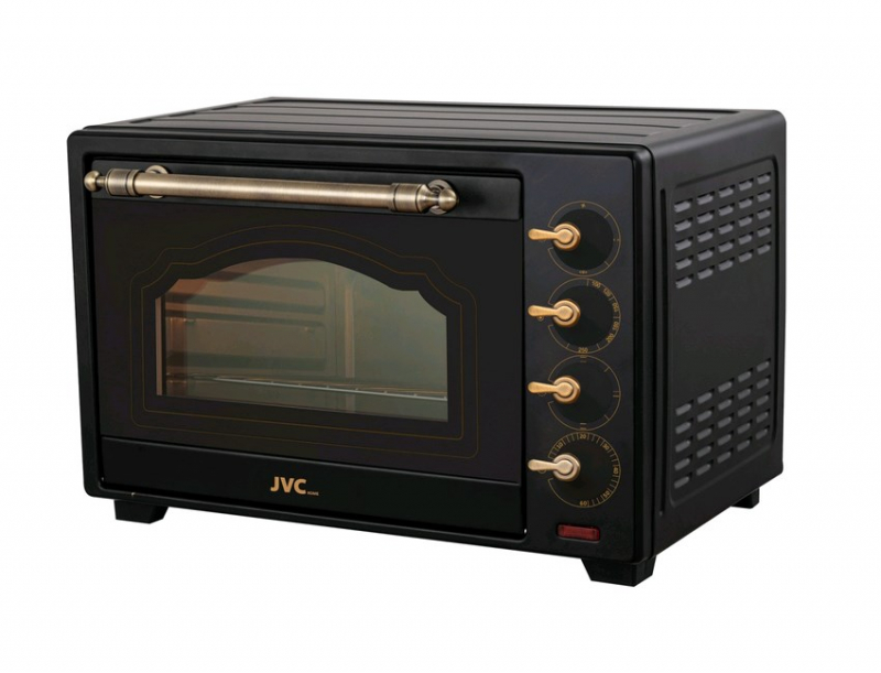 электропечь, металлическая решетка, плоский противень, ухват для противня, круглый противень для пиццы, вертел для гриля, ухват для вертела, насадка для приготовления шашлыка/кебаба, поддон для крошек, гарантийный талон, инструкция на русском языке