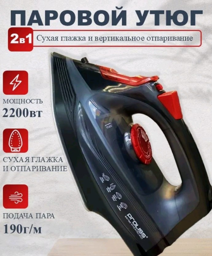 Утюг PROLISS - это идеальный выбор для тех, кто ценит качество и удобство. Он имеет мощность 2200 Вт, что позволяет быстро и эффективно разглаживать любые ткани. Одной из главных особенностей этого утюга является керамическая подошва, которая обеспечивает легкое скольжение по поверхности ткани и предотвращает появление царапин. Кроме того, паровой утюг имеет функцию вертикального отпаривания, что позволяет разглаживать одежду на вешалках или на плечиках. Одним из главных преимуществ этого утюга является система самоочистки. Она позволяет удалить остатки накипи и других загрязнений из резервуара для воды без необходимости его очистки вручную. Это значительно упрощает процесс ухода за утюгом и делает его более удобным в использовании. Кроме того, утюг для одежды имеет множество дополнительных функций, таких как паровой удар и постоянная подача пара. Они позволяют быстро и качественно разгладить даже самые сложные складки на ткани. Также утюг оснащен функцией регулировки подачи пара и температуры, что позволяет настроить его под различные типы тканей и условия глажки. Утюг PROLISS PRO-2777 также имеет защиту от накипи и перегрева, что обеспечивает его долговечность и безопасность в использовании. Благодаря противокапельной системе, утюг не оставляет следов воды на ткани после глажки. А мерный стакан, входящий в комплект, облегчает процесс наполнения резервуара для воды. Беспроводной утюг – это надежный и удобный инструмент для глажки, который поможет вам сэкономить время и силы. Он станет незаменимым помощником в вашем доме или на работе. Отличный подарок на день рождение, на новый год, на 8 марта.