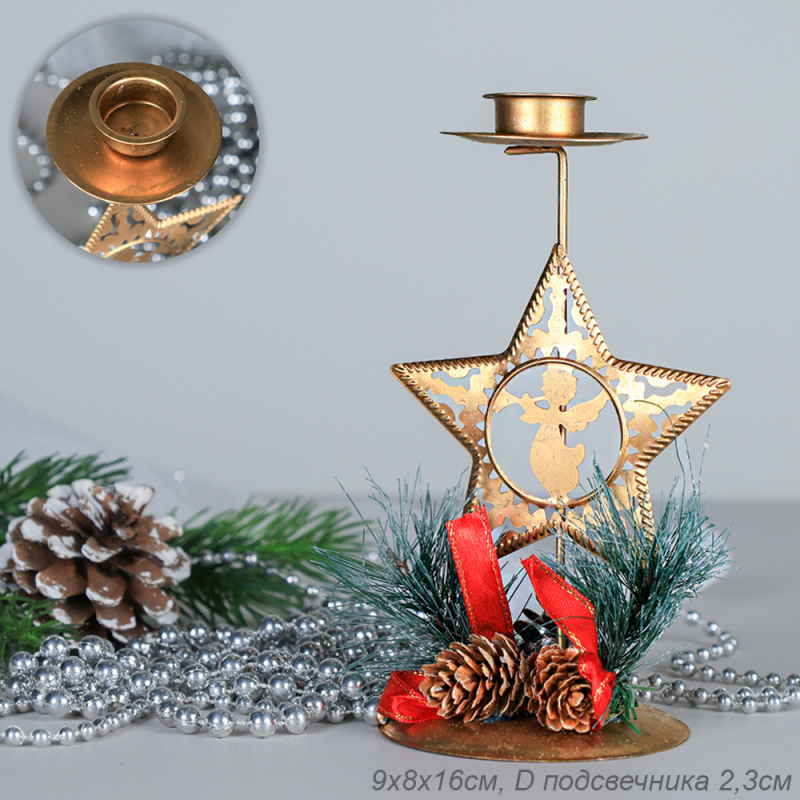 Подсвечник новогодний Ангел 16 см / SF2023-147 /уп 240/ (10511010/140624/3054055, Китай)