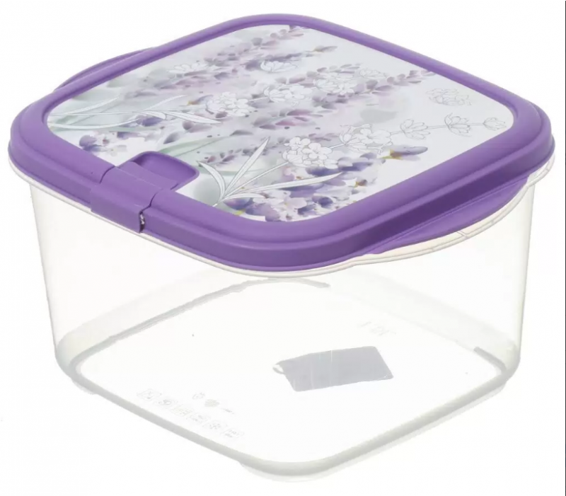 СП Контейнер пищевой пластик, 1.5 л, 15х15х10 см, квадратный, с клапаном, Полимербыт, Lavender, 4397