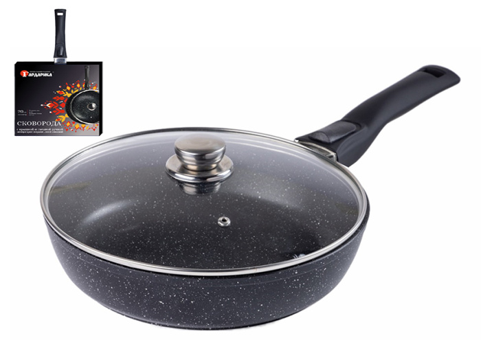 ГАРДАРИКА "Мрамор Орион" Сковорода с крышкой и съемной ручкой д.24 см