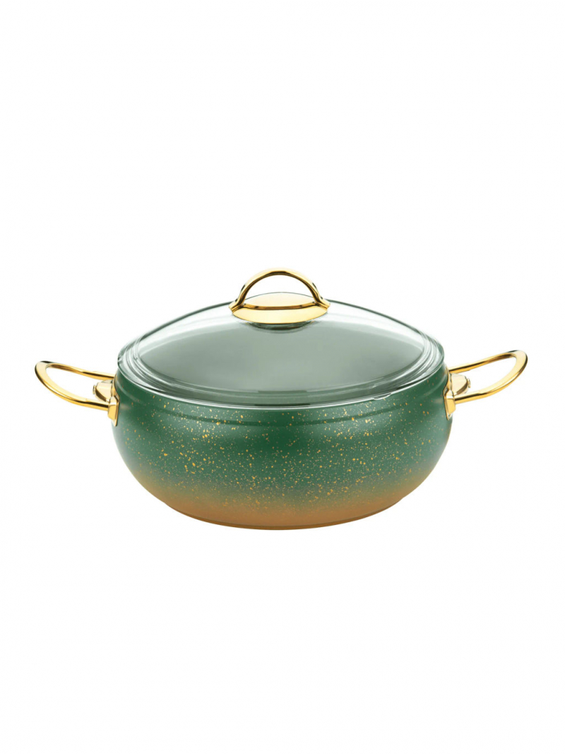 DLK Кастрюля с крышкой стеклянной 26 х 11 см (5,7л) с АПП, цв. оливковый/золотой,