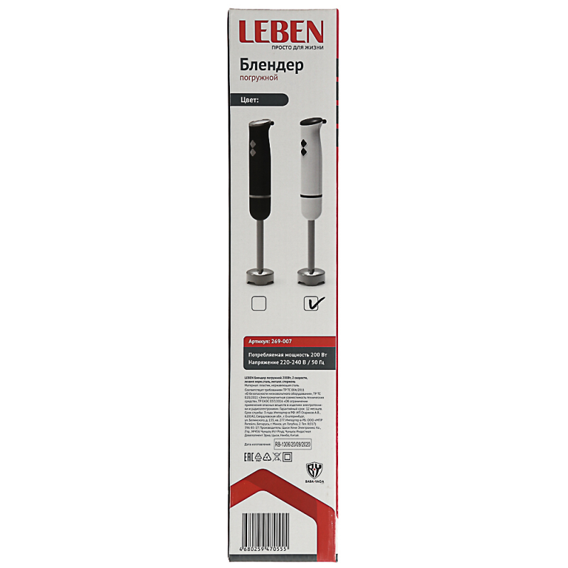 VETTA LEBEN Блендер погружной 200Вт, 2 скорости, лезвия нерж.сталь, металл. стержень