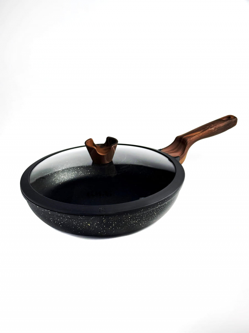 OMS Сковорода цвет черн с крышкой стеклянной с АП покрыт,размер: 24x6 см(2,8л),