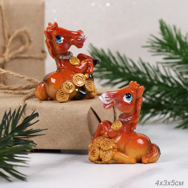 Фигурка Лошадь с деньгами 4х5 см / 8099 /уп 12/960/ Символ года 2026 (10702070/260625/5219046, Китай