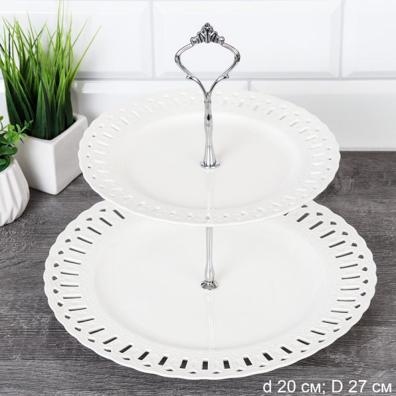 Ваза для фруктов 2-х ярусная 20/27 см ажурная / R-631 /уп 11/ ручная работа