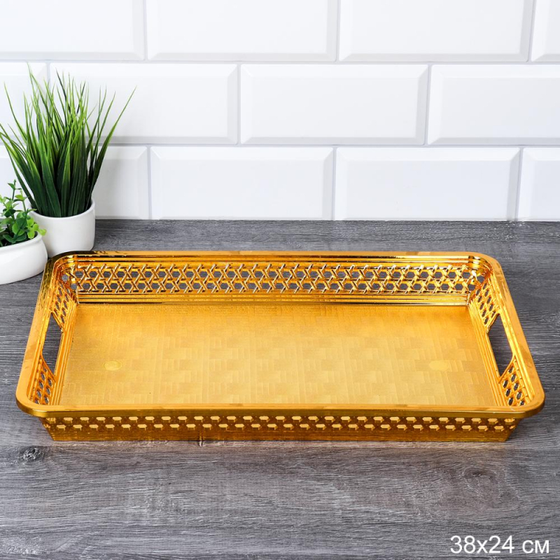 Поднос прямоугольный 38x24 см / 3824 /уп 60/ золото/пластик