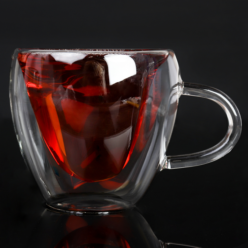 Кружка 250 мл с двойными стенками дно цветное в виде сердца / LCWB5703 /уп 100/