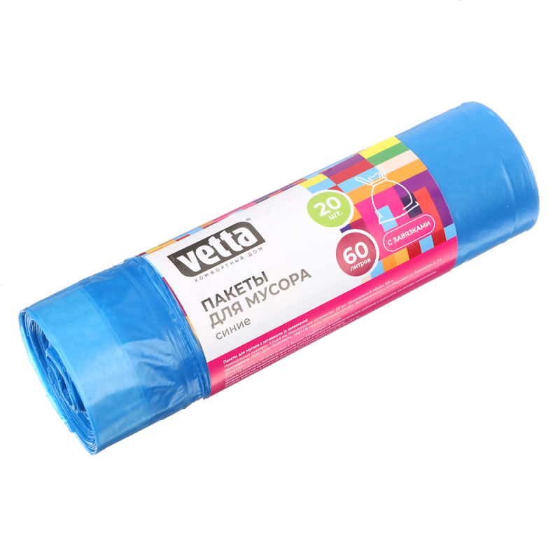 VETTA Мешки для мусора с завязками 60 л., 20шт., рулон