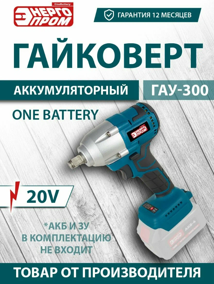 Гайковерт аккум. ONE BATTERY "ЭНЕРГОПРОМ Home Master" ГАУ-300 (2 АКБ и ЗУ) (синий квадрат) /уп.10шт.