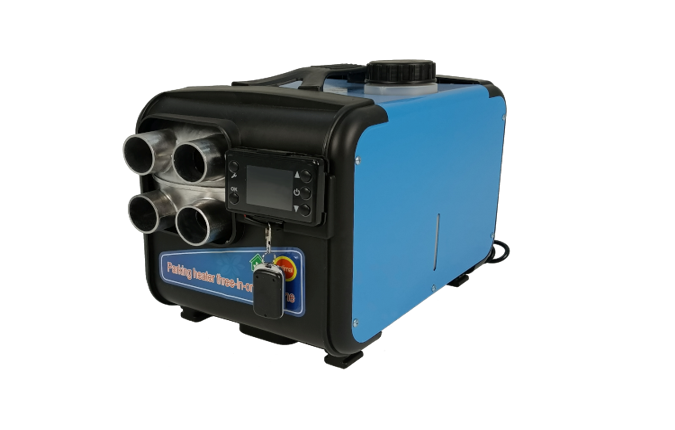 Отопитель работает на дизельном топливе. Устройство комплектуется удобным пультом управления с индикацией мощности, напряжения, температуры, а также имеет пульт дистанционного управления с дальностью действия 50-70 метров. Объём топливного бака составляет 5 литров.