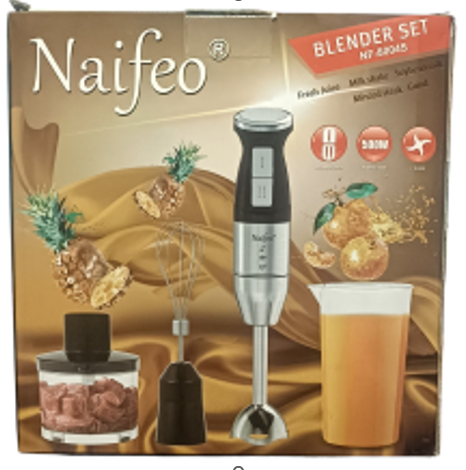 Блендер погружной "Naifeo" (18) Мощность 500вт, 2-х скоростной режим, мерный стакан 700мл, венчик, измельчитель 500мл, материал пластик, нержавеющая сталь