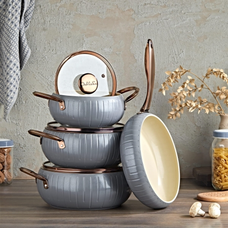 OMS Набор Посуды АП с Керамическим покрытием 7 (4/3) предмет,крышки стеклян,цвет:серый,