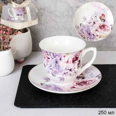 Чайная пара 2 предмета 250 мл PVC / 2416-2PV /уп 36/ Костяной фарфор
