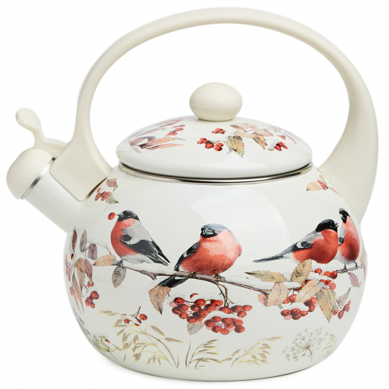 ARTI-M ЧАЙНИК AGNESS ЭМАЛИРОВАННЫЙ СО СВИСТКОМ СЕРИЯ "СНЕГИРИ", 2,2Л, ИНДУКЦИОННОЕ ДНО