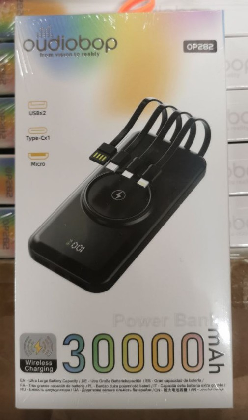 Внешний аккумулятор (Power Bank) 30 000mAh (OP282) индикация, 4 кабеля oudiobop