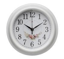 2121-139 (10) Часы настенные круг d=21см, корпус белый "Венок из роз" "Рубин"