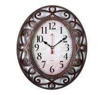 3126-004 (10) Часы настенные овал 31х26 см, корпус черный с бронзой "Классика" "Рубин"