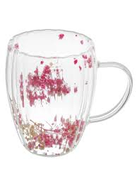 СП Кружка стекло, 350 мл, Оптик сухоцветы розовые, двойные стенки, Y4-9726