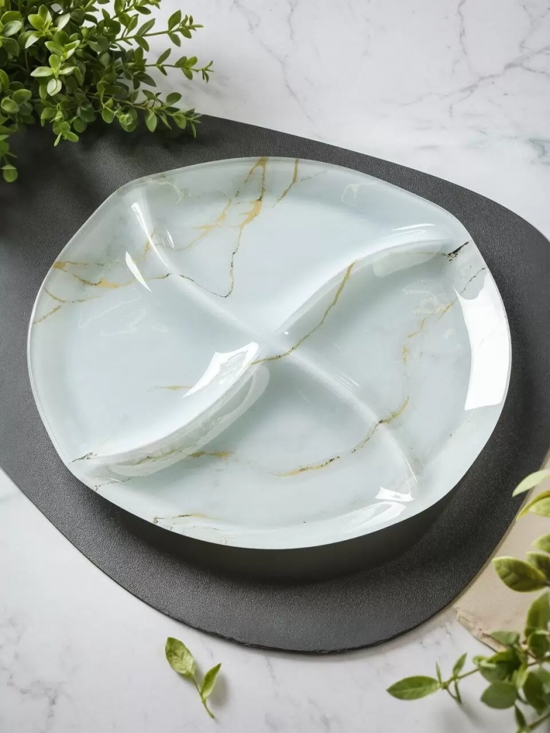 СП Менажница стекло, 29 см, круглая, Daniks, Флюид, бежевая