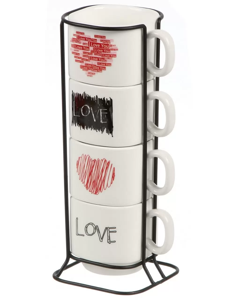 СП Набор кружек керамика, 4 шт, 200 мл, Любовь, Daniks, Y4-9701, металлическая подставка