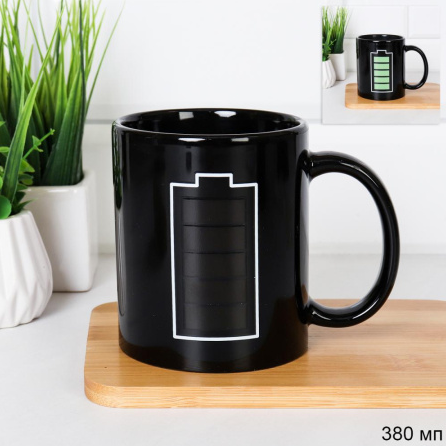 Кружка 380 мл Хамелеон Батарейка / HY-301 /уп 50/ в коробке/ заряжается от горячего напитка/ 9,5*8*1