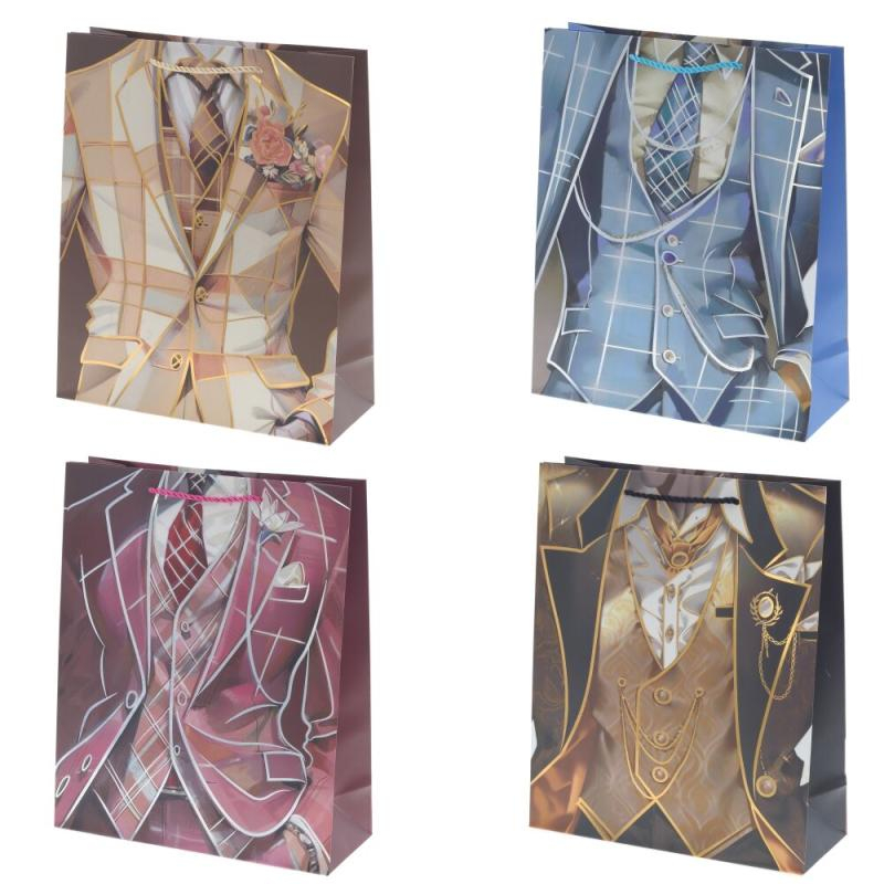РЕМЕКО Пакет подарочный M (бумага 210г/м2, блок микс 12шт), L26 W10 H32 см, 4в.