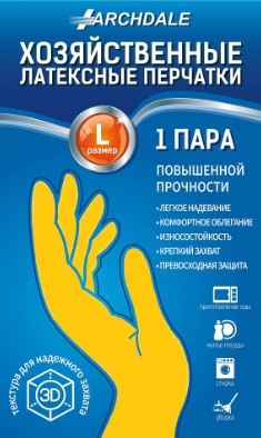 Перчатки хозяйственные тм Archdale, жёлтые в инд. упак. р. L