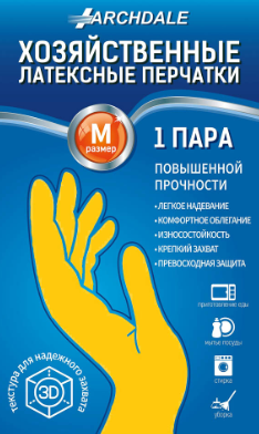 Перчатки хозяйственные тм Archdale, жёлтые в инд. упак. р. M