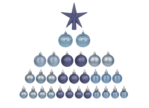 СНОУ БУМ Набор шаров и украшений 30 шт, 3см, 4см, 6см, 8см, синий