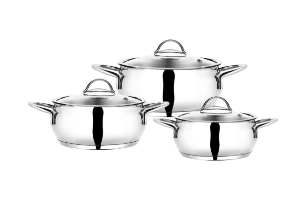 DLK Набор посуды из нержавеющей стали из 6 (3/3) предметов, крышки жаропрочное стекло, арт.35103