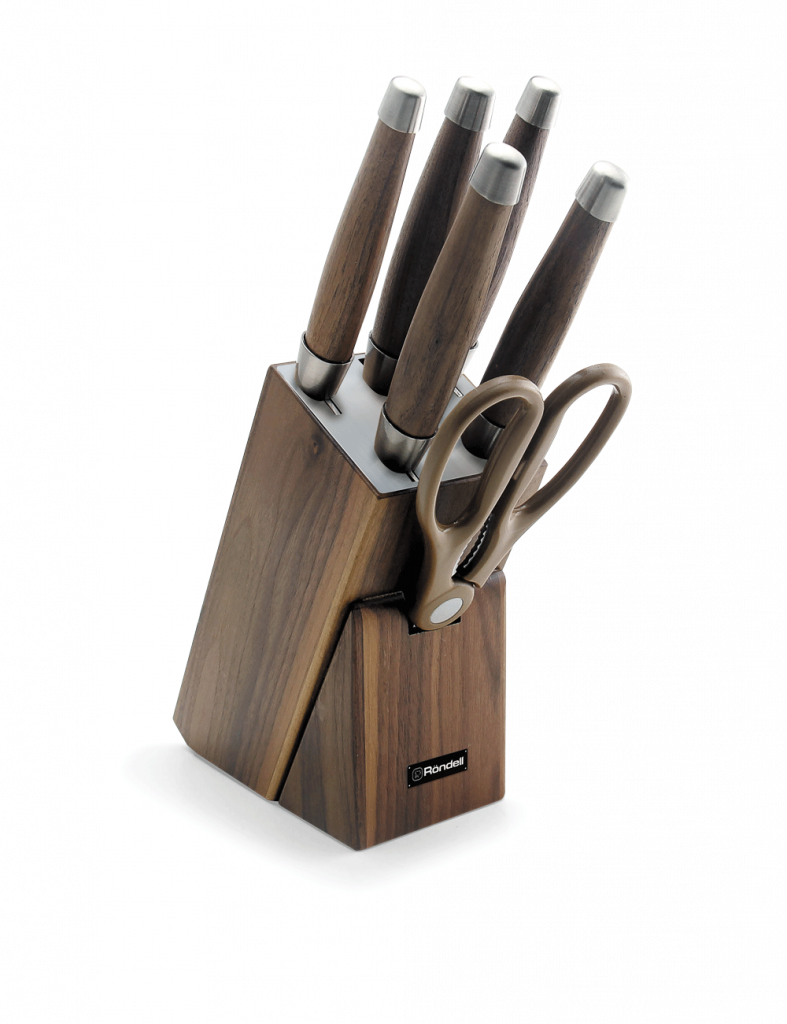 Rondell Glaymore Набор из 5 ножей c ножницами на деревянной подставке
