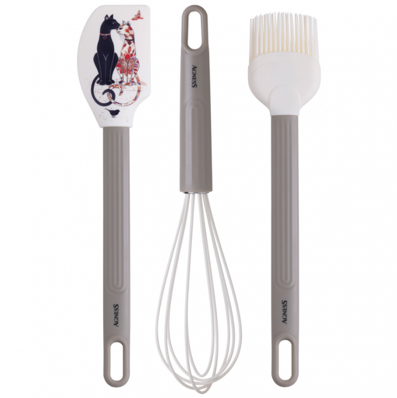 ARTI-M НАБОР: ВЕНЧИК, ЛОПАТКА, КИСТОЧКА AGNESS, 3 ПРЕДМЕТА, СЕРИЯ "ПАРИЖСКИЕ КОТЫ"