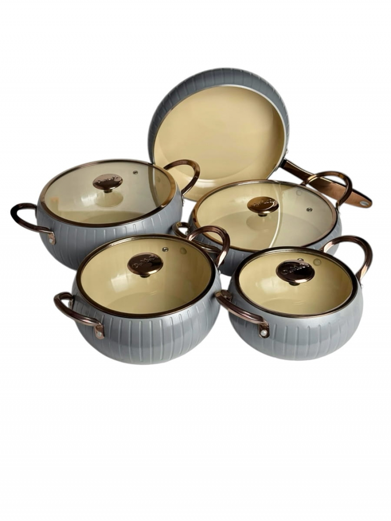 OMS Набор Посуды Керамика из 9(5/4) предметов, крышки стеклянные, цвет:серый, арт. 12002-ANTR
