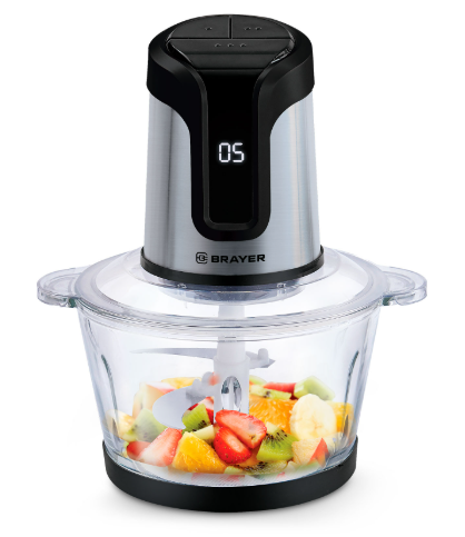 Минирезка BRAYER BR1407,800 Вт, LED дисплей, Стекл чаша 2 л, 4 лезвия из нержав. Стали