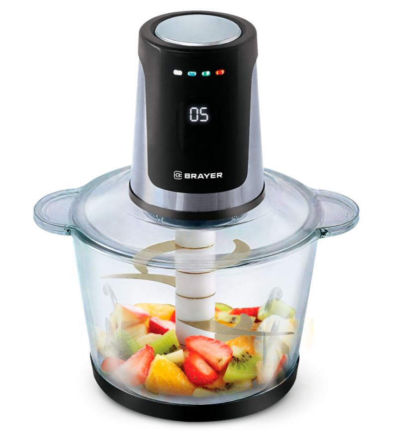 Минирезка BRAYER BR1408, 800 Вт, стекл чаша 3 л, 6 лезвий из титана, LED дисплей