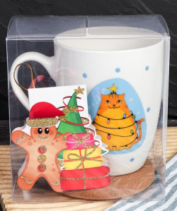 Подарочный набор Кружка 400 мл с подставкой под горячее / CAT-517-mix /уп 72/ кружка новогодняя/ в п