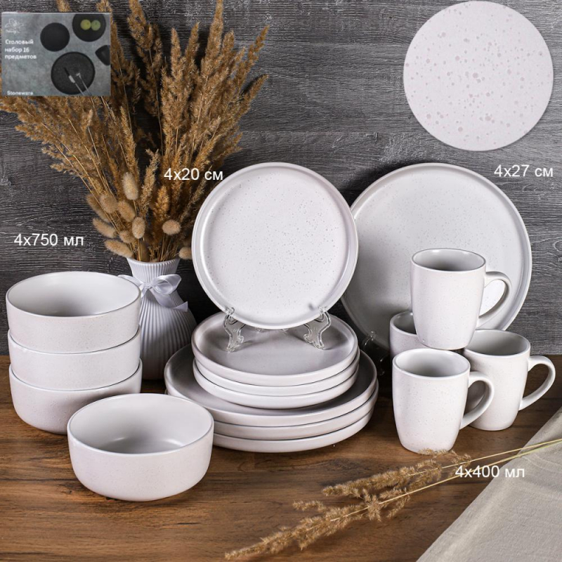 Столовый набор 16 предметов Белый / WS24-0015W /уп 2/ Капелька росы С
