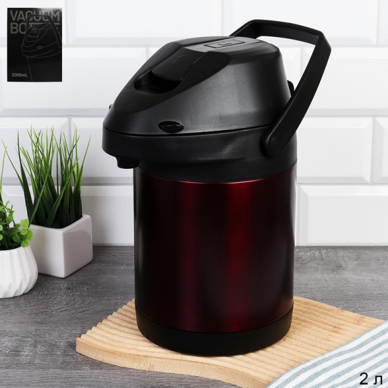 Термос 2 л с помпой / TPC-277 /уп 12/ Вишневый