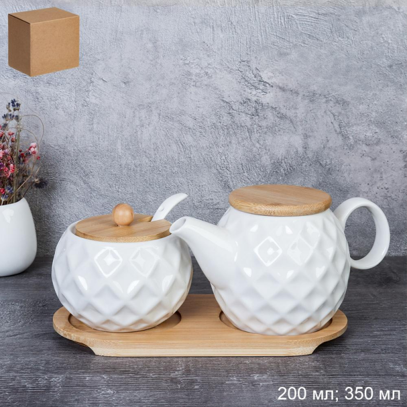 Чайник заварочный 350 мл и сахарница 200 мл с ложкой / CF127 /уп 36/ на подставке