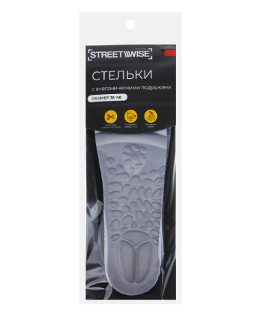 Стельки тм STREETWISE, универсальные, пяточный амортизатор, п/э, EVA, хлопок, р.36-40