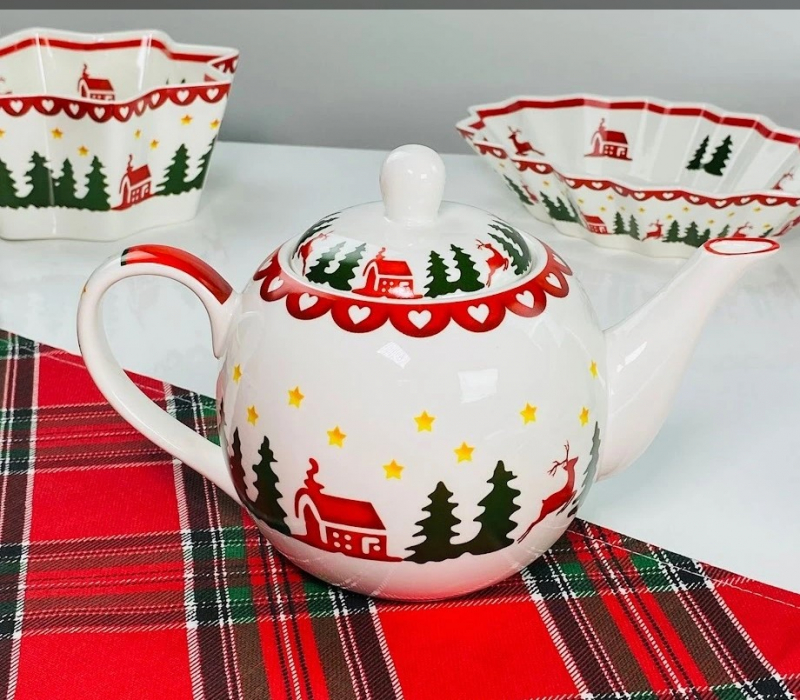 LENARDI Чайник заварочный 850мл НОВЫЙ ГОД в под.уп.(х24)Фарфор