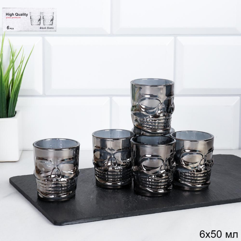 Стопка 6 штук 50 мл Череп / KL-S50Н /уп 24/ графит