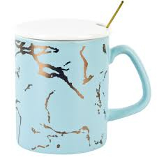 ENS Кружка с крышкой и ложкой "Голубой мрамор" (голубой) v=380 мл (подарочная упаковка)