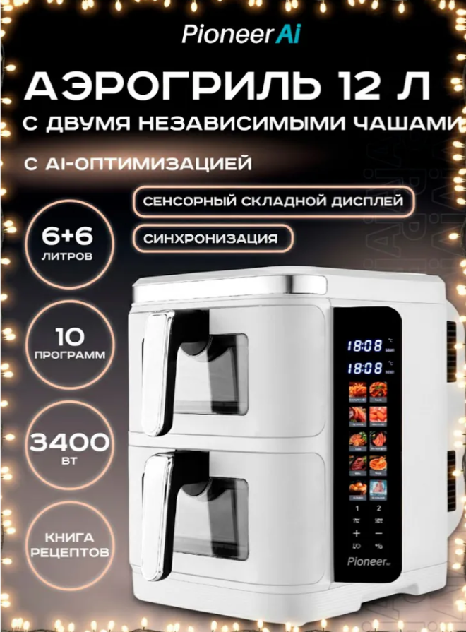 Аэрогрили Pioneer SM550D white 1700+1700Вт °С: 60-200 6+6л 12 программ