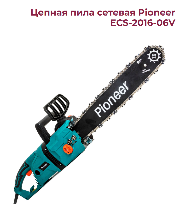 Пила цепная электрическая Pioneer ECS-2016-06V 2000Вт 6500об/мин шина 16" бак 200мл.