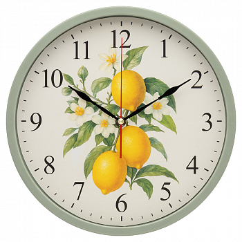 3027-041 (10) Часы настенные круг d=30см, корпус оливковый "Лимоны", Рубин